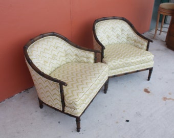 Vintage HENREDON Faux Bamboo PAIR Club Barrel Chairs Hollywood Regency